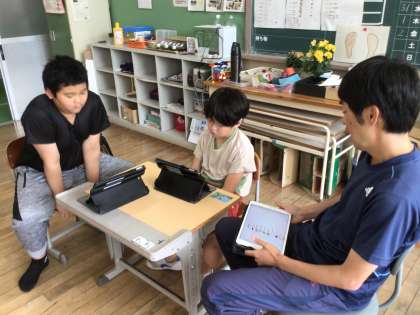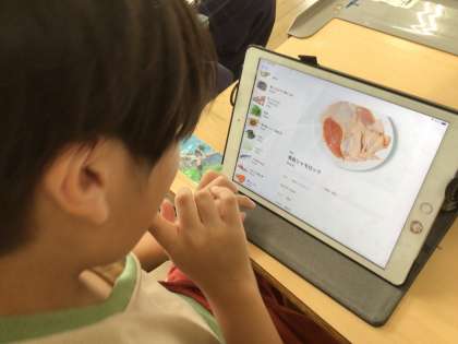 地産地消について、以前勉強したことを思い出してタブレットで調べているようです。