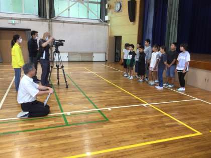 体育館で、御作小学校の好きなところをクラスごとに撮りました。緊張の様子を写真に撮りました。