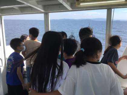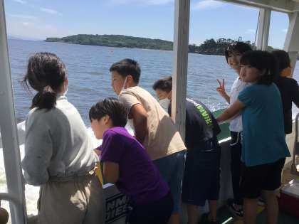快晴の中、船からの眺めは素晴らしいです。 みんな大興奮です。