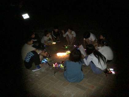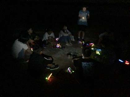 真っ暗な中、砂浜に行き、ハンカチ落としをしたり、マイムマイムを踊ったりしました。