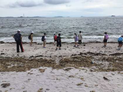 砂は綺麗なのですが、台風のせいか枝等がたくさん打ち上げられていました。
