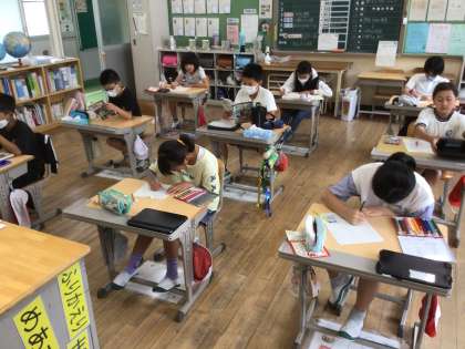 野外ふれあい教室の振り返りを絵日記にしていました。