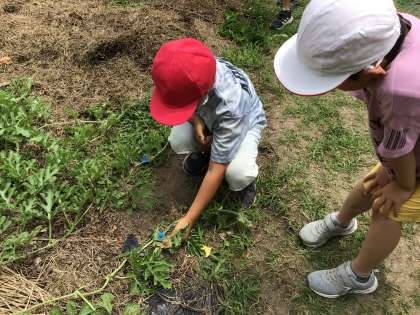 スイカやカボチャの実(子どもの中には赤ちゃんと言っている子もいます)ができました。