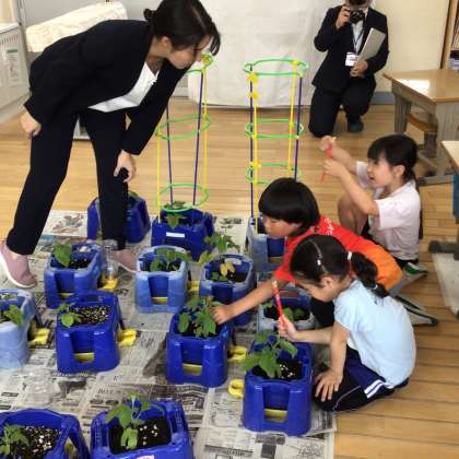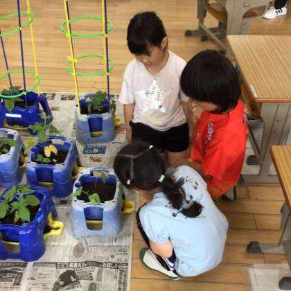 1年生の子たちは緊張しながらもいつものように一生懸命観察して気付いたことを発表していました。