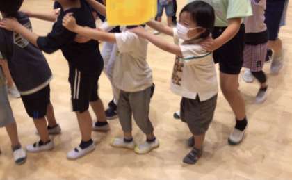 ジャンケンをして、勝ったずっと先頭で、負けたら後ろに繋がっていくゲームです。