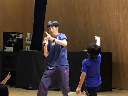 2人でお手本の動きをしたり、集まる人数を言ったりして、ゲームを盛り上げていました。