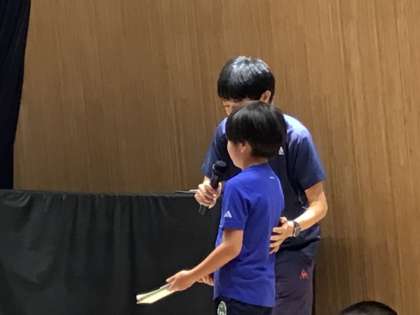 次のゲームの説明も御作小学校の教師と子どもが行いました。