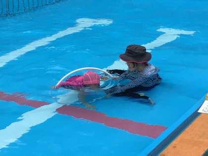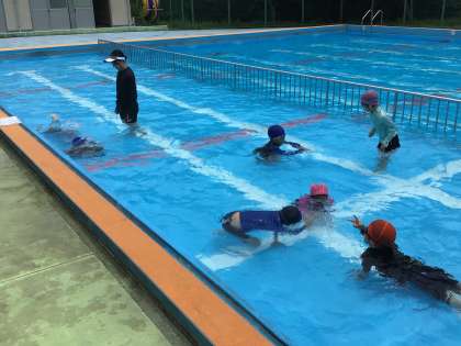 WBGTの数値が心配でしたが、少し曇り空になり、プールに入ることができました。