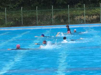朝は雷が鳴っていてプールに入れるか心配しましたが、雷がおさまったので入ることができました。