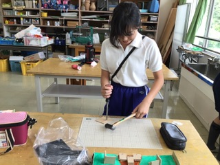 ボール紙に板や紙でコースを作り、ビー玉を転がすゲームを作っています。ビー玉をパチンコのように弾く野球ゲームや落とし穴のあるゲーム等、どれも面白い作品になりそうです。