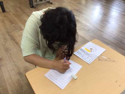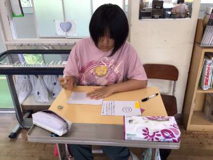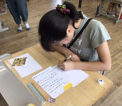 さすが6年生、心を込めてメッセージカードを真剣に書いています。