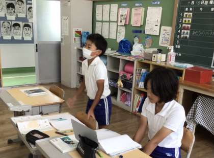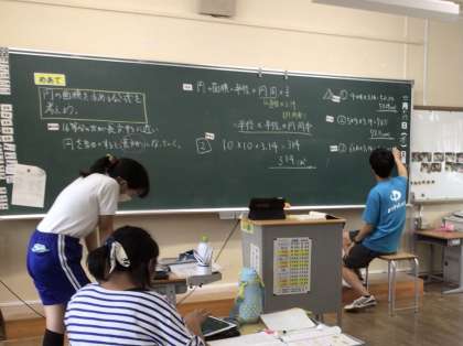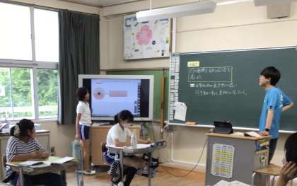 デジタル教科書で、円が長方形になる映像があり、自分たちで気付いたことが視覚的に証明されて、感動していました。