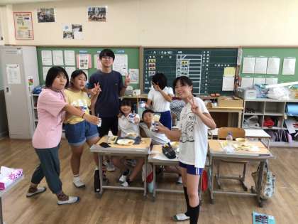6年生は夏休みに入ってすぐに誕生日の子がいるので、牛乳で乾杯です。