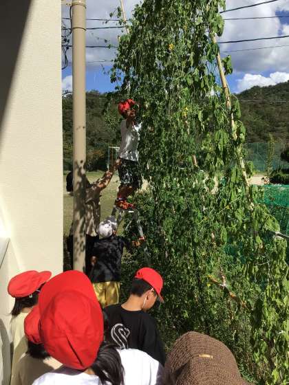 今年度は暑すぎて、ゴーヤの生長が芳しくありません。