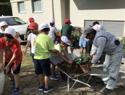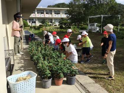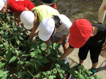 夏休み中、菊の苗を地域の方が自宅で預かり、お世話をしてくださっていました。