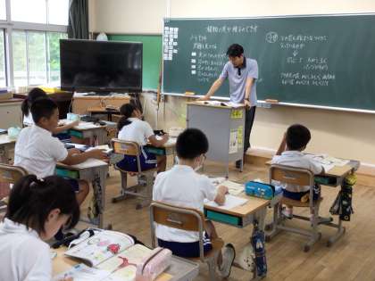 まずは、教科書を見て、めしべなどを確認しながら、絵を描いています。