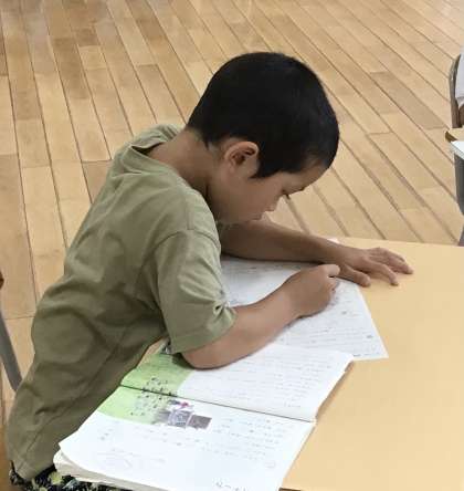 アドバイスをもらいながら、一生懸命気持ちを書いています。