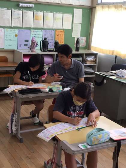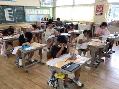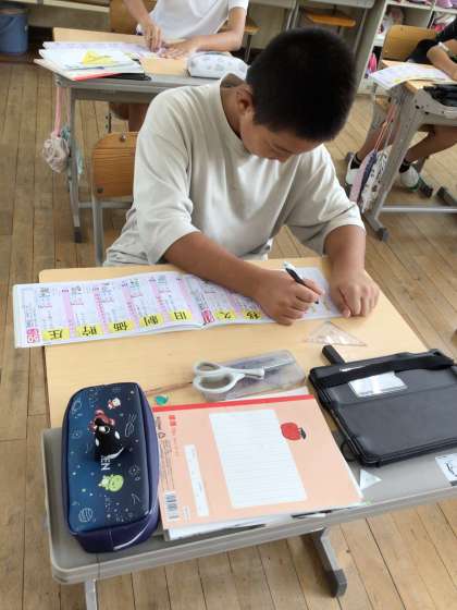 漢字ドリルを黙々と行なっていました。 わからない場合は、自分で確認していました。