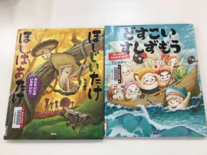 5、6年生の読み聞かせをしてくださっている方は、本校の司書さんです。中央図書館や藤岡交流館から絵本を借りてきてくださった絵本を読んでくださっています。今日の絵本は「ほしじいたけ ほしばあたけ」「どすこいすしずもう」です。