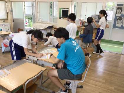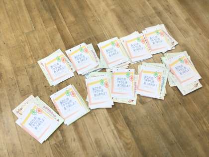 元気集会委員会は、前期の「かがやきカード」を一人ずつまとめていました。