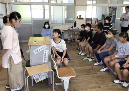 5年生1人、6年生1人がスピーチをし、他の子たちはスピーチを聴きます。1年間で、全員がスピーチをします。