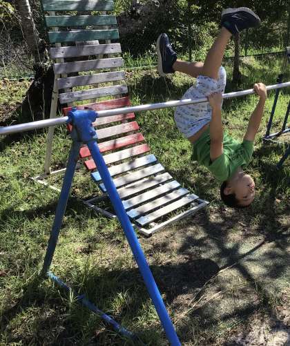体育の授業で逆上がりができるようになったことを報告してくれたので、休み時間に観に行きました。1人目の子です。嬉しいよね。きれいな逆上がりでした。