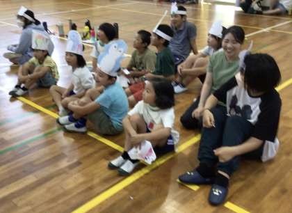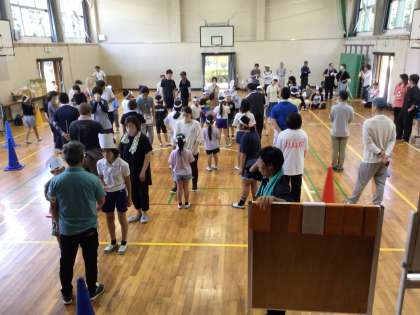 子どもたちと保護者の方々と地域の方々で、「ピラミッドジャンケン」をしました。