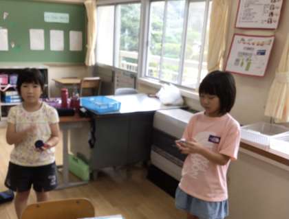 3拍子の1拍目をタンバリン、2、3拍目をカスタネットのように打つのが案外難しかったかもしれません。