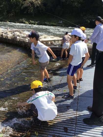 10月6日 1、2年生 校外学習 公開日 2023/10/06 更新日 2023/10/06 お知らせ 1、2年生が地域学習として、川口やなともぐもぐに行きました。 川口やなでは、最初に川の様子を肌で感じました。 川口やなでももぐもぐでも、地域の方に優しくしていただき、子どもたちは「なんて幸せな日だ」と感動していたようです。 藤バスの運転手さんにも「降ります」のブザーを押したい子は押していいよと言っていただき、喜んで押していました。 地域の皆様、ありがとうございました。
