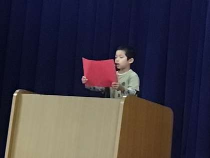 2人目の子は、宿題を全部家でやれるようになり、自信がついたというスピーチでした。自分でしっかりやりたいという目標をもって、それができるようになると成長を感じ、次のステップにいけますね。