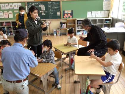 また、地域講師の方が1人に1本ずつ竹とんぼを作ってきてくださり、体育館で飛ばすこともしました。