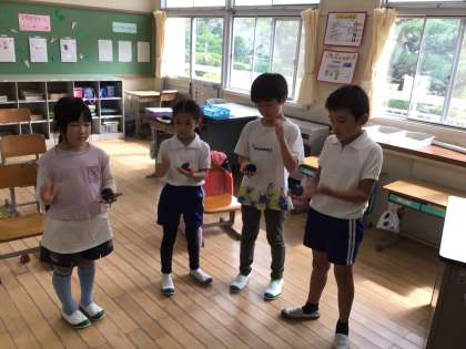 音楽の授業で練習した成果を先生たちに見てもらいました。
