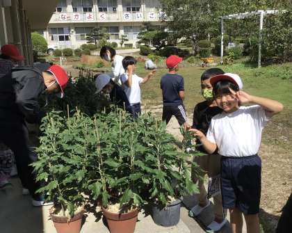 背の低い菊の方が倒れなくてよいそうです。