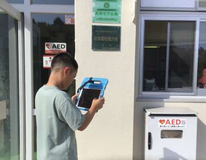 校長室にも来て、火災報知器の写真を撮っていました。
