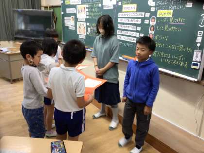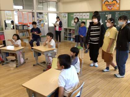 2年生の道徳の授業に、6年生が見に来てくれました。