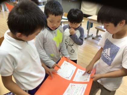 そして、途中で教室に戻ったと思ったら、かがやきカードを書いてきてくれました。
