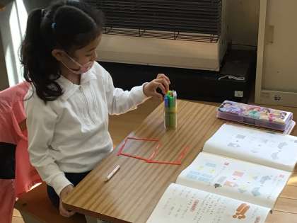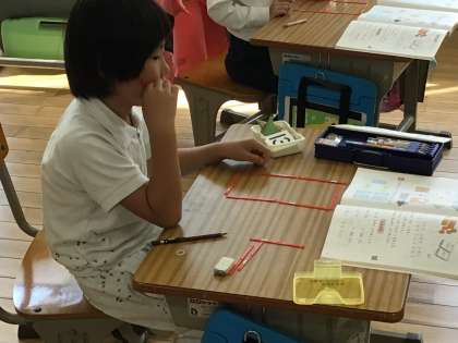 図形や数え棒をひっくり返したり、移動させたり、取ったりして、違うものを作り出していました。