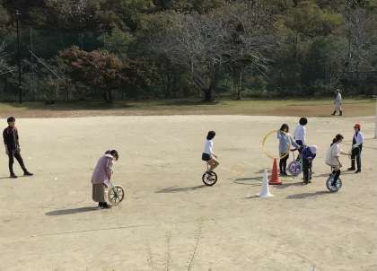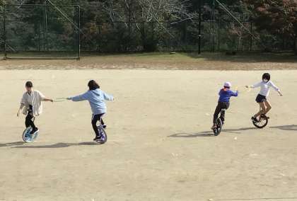 全く一輪車に乗れなかった子たちも乗れるようになってきました。そして、技に挑戦する子も出てきました。みんな頑張っています。