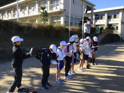 修学旅行に行く6年生に、5年生が楽しいクイズや歌を披露してくれました。