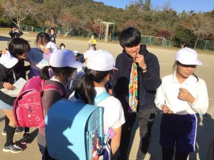 5年生の子たちが手作りの品物(お守りや折り鶴)を6年生の子たちにプレゼントをくれました。