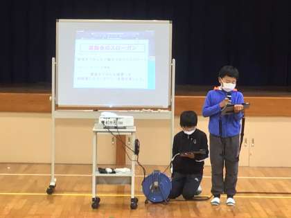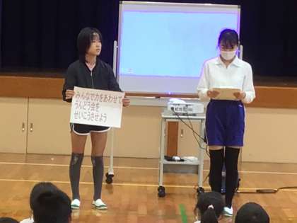ミュージック♪アナウンス委員会から、生活目標は「みんなで力を合わせて運動会を成功させよう」であるということを発表されました。