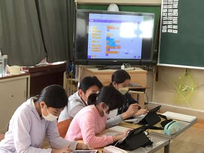 5年生は、前回の続きで、シューティングゲームを作成していました。