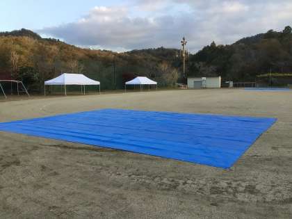 みつくりんぴっくのスタートとゴールの位置にブルーシートをしきました。