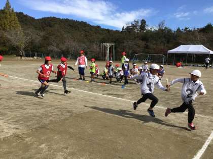 一人一人が全力で走り、全校児童でバトンをつなぐ光景は圧巻です。