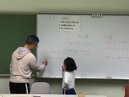 30➕70✖️6は似ているけれど、答えが違ってくることを確認していました。