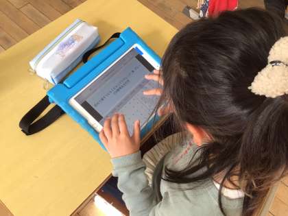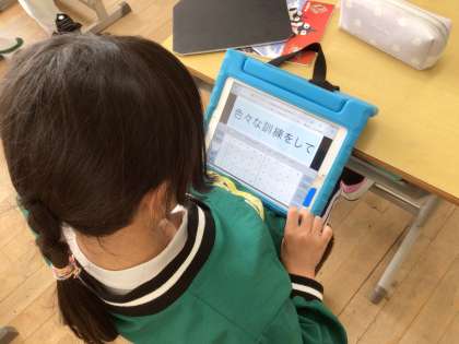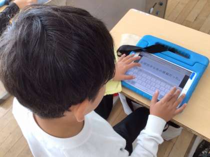 発表を聞いたら、忘れないうちに、わかったことなどをタブレットに記録します。