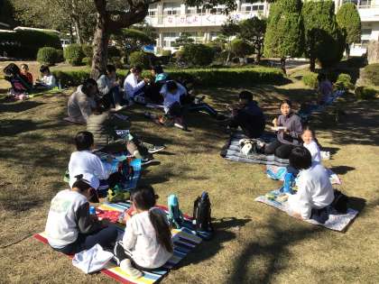運動会が土曜日にできなかった場合の対応で、今日はみんな弁当の日になりました。