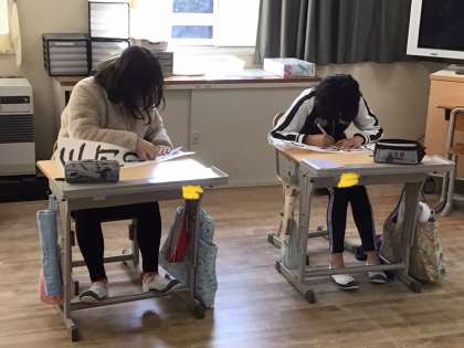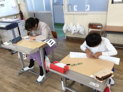 まずは、お手本に折り目をつけて字のバランスをわかりやすくしています。