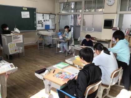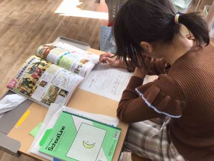 穴埋めの学習プリントをもらい、教科書や資料集を読んで、穴埋めをしています。