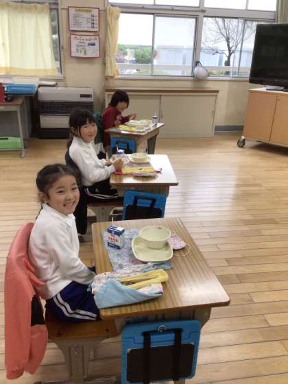 給食の終わり頃、教室に行ったときの笑顔です。